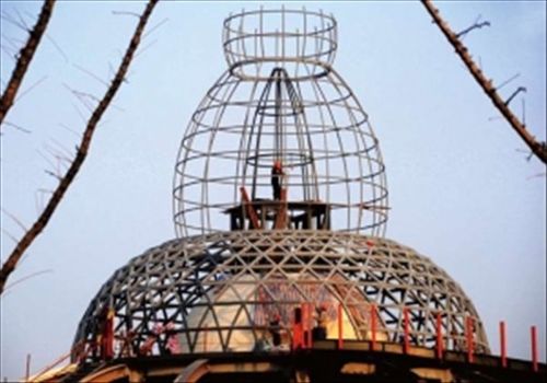 可不要認(rèn)為用竹藤做建筑材料是很簡單的事。在以“零化學(xué)物質(zhì)”著稱的印度館內(nèi)使用了世界上最大的竹制穹頂:一根跨度逾三十四米的頂梁,要用竹材加工出弧度來,其難度可想而知。竹子最終能夠“挑大梁”,實(shí)際上是利用現(xiàn)代工藝和科技對(duì)傳統(tǒng)材料進(jìn)行再加工的結(jié)果。