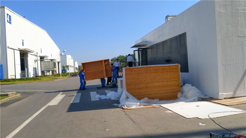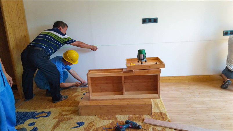 遠(yuǎn)大可建是遠(yuǎn)大科技集團(tuán)全資子公司,是全球持續(xù)建筑的先驅(qū),創(chuàng)造360小時建成30層精裝酒店的奇跡,目前在可持續(xù)酒店產(chǎn)品進(jìn)行深度研發(fā)?;趯χ癫牡南矏酆蛯χ癫沫h(huán)保的高度認(rèn)可,遠(yuǎn)大總裁張躍親自參與此次與桃花江竹材科技在其塔式酒店產(chǎn)品竹整裝項目的洽談。在遠(yuǎn)大可建汨羅工廠,酒店竹整裝三套樣板間安裝施工已基本完成,內(nèi)部裝飾全部在桃花江竹材科技工廠加工后運至在現(xiàn)場組裝,地面鋪設(shè)竹地板,整體效果簡潔、自然、溫馨。遠(yuǎn)大總裁張躍視察樣板間后對竹材裝飾效果十分滿意,表示將加大對可建酒店竹整裝項目的研發(fā)與推廣,加強(qiáng)與桃花江竹材科技的深度合作,期望未來全世界每三幢新建建筑就有一幢是可建。