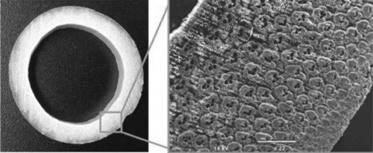 竹子是一種最典型天然的功能梯度材料。 從結(jié)構(gòu)上看,竹子是一種纖維增強(qiáng)復(fù)合材料,由兩種主要的組織組成: 作為增強(qiáng)作用的纖維(維管束) 和作為基體的薄壁細(xì)胞,這些纖維有很強(qiáng)的剛性,可以與鋼筋媲美。為了識別竹材莖稈中增強(qiáng)纖維的分布特性與竹稈抗彎剛度之間的關(guān)系,研究人員研究了竹材橫截面中的纖維分布。